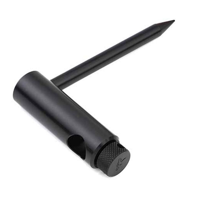 Elegant, elegant stabilisator i sort anodiseret aluminium. Denne stabilisator holder din bankstick sikkert på løs jord. Den har en tommelfingerskrue til sikker fastgørelse til banksticken og en solid, skarp spids, der er nem at presse ned i jorden.