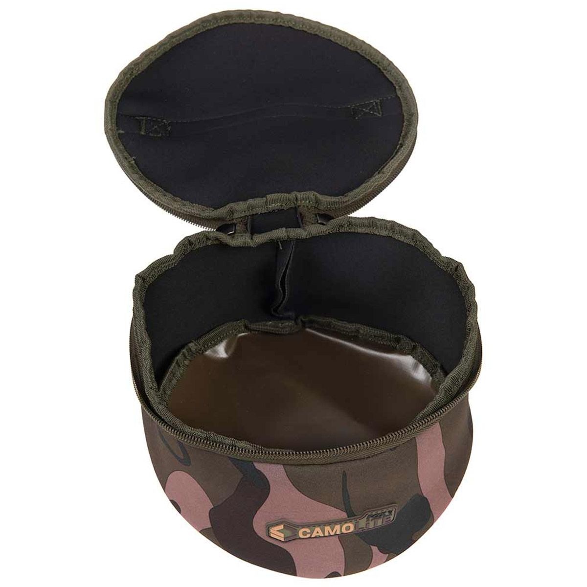 Fox Camolite Pan Set Bag er en neopren taske med et unikt Fox Camo print til opbevaring af Fox Cooksets. Tasken kan rumme standard 3-delt eller større 4-delt Fox Cooksets