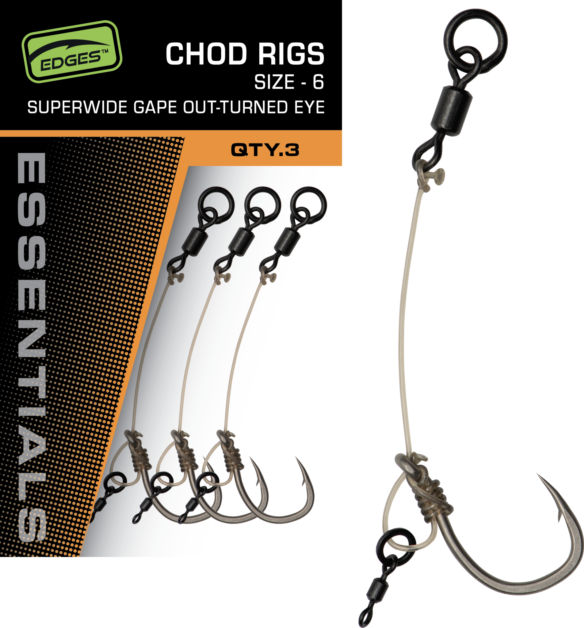 Riggene er udstyret med Super Wide Gape-krogen med et udadvendt øje , hvilket sikrer et aggressivt krogsæt og en større chance for at kroge en karpe ved et hug. Den stive Edges Rigidity Trans Khaki monofilament sikrer en perfekt præsentation af pop-up-agnet og hjælper rigget med at bevare sin form.
