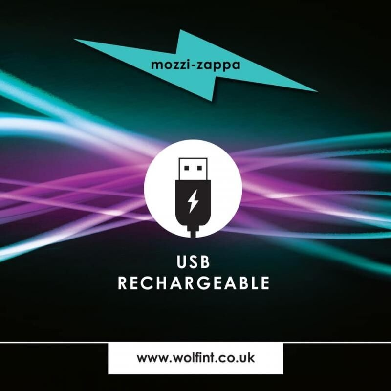 Wolf Mozzi-Zappa 2022 er et elektrisk myggemiddel, der er udstyret med et genopladeligt batteri. Mozzi Zappa kommer med et USB-opladningskabel og en praktisk børste til at rengøre grillen. Enheden er desuden udstyret med en indbygget lommelygte. Når du tæ