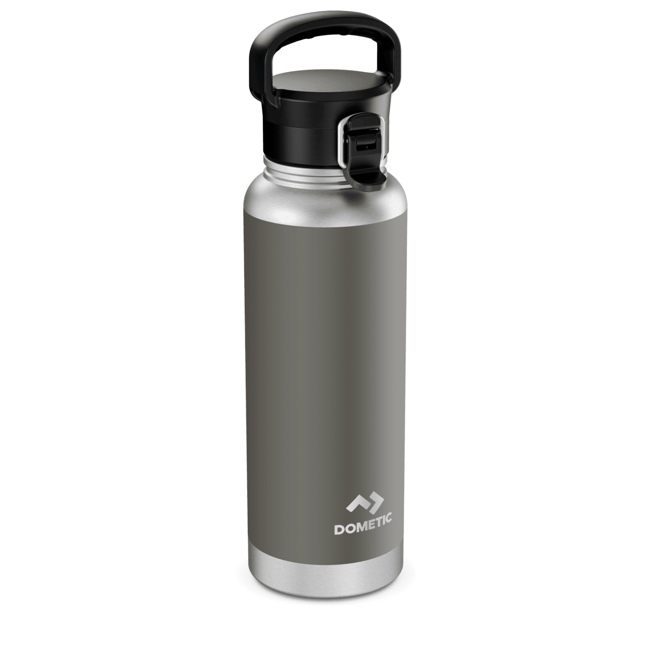 Denne 1,2 liters Dometic-flaske i rustfrit stål med dobbeltvæg tilbyder plads nok til kolde eller varme drikke til en større gruppe. Du kan fylde kopper og glas eller drikke direkte fra flasken.