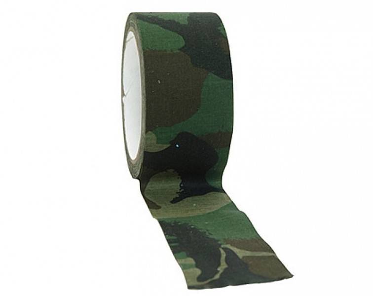 Starkes Klebeband aus Textil mit Tarnmuster. Dies ist der sogenannte Woodland-Druck. Ideal, um Ihre Inhalte anzupassen und weniger sichtbar zu machen. Das Band ist 5 cm breit und es gibt 10 Meter auf einer Rolle.