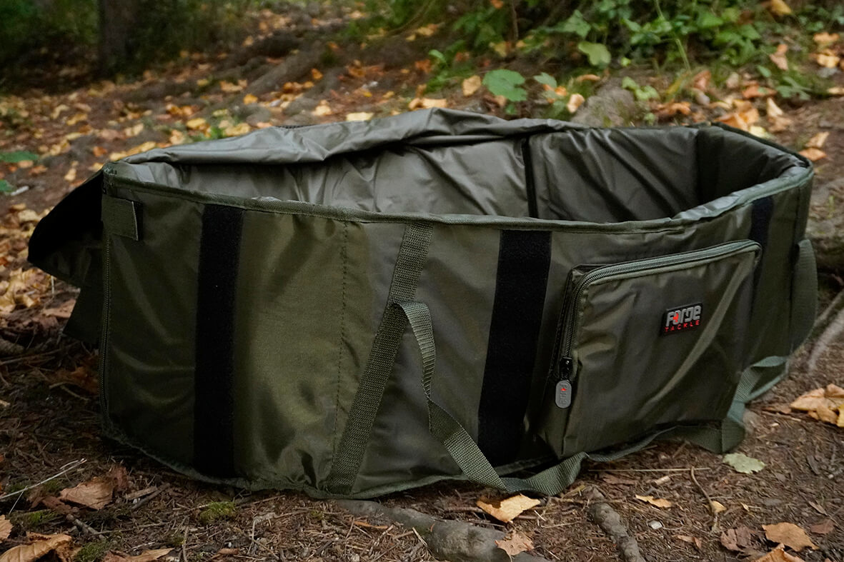 - Abdeckung mit Klettverschluss und Gumminetzfenster, um den Fisch leicht nass zu halten