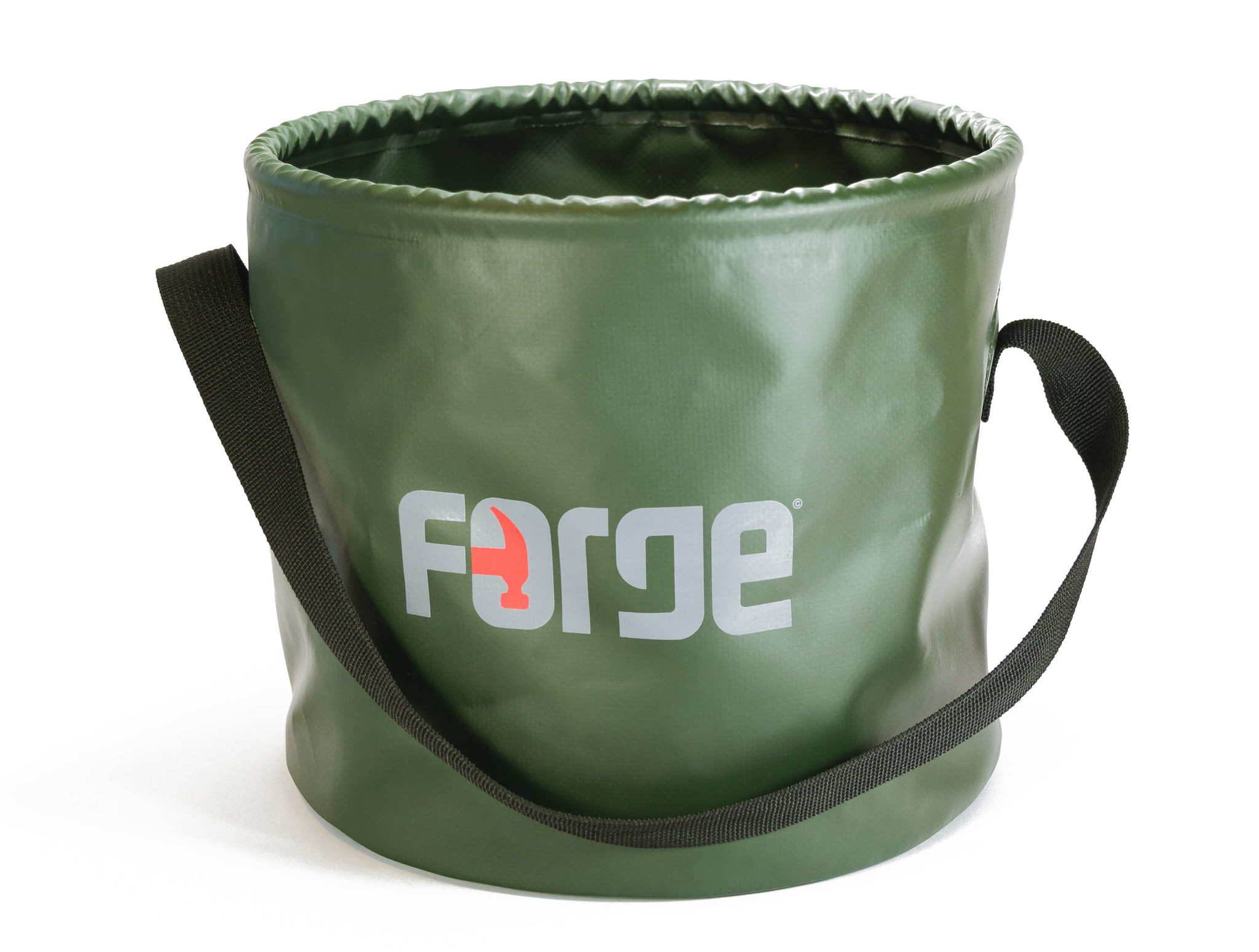 Der Forge Tackle Multi Bucket besteht aus strapazierfähiger PVC 500D Plane, erhältlich in drei Größen, kompakter Dia. 19cm H11cm Fassungsvermögen 3 Liter, mittlerer Durchm. 24cm H11cm Fassungsvermögen 5 Liter, groß Durchm. 24cm H20cm Fassungsvermögen 10 L