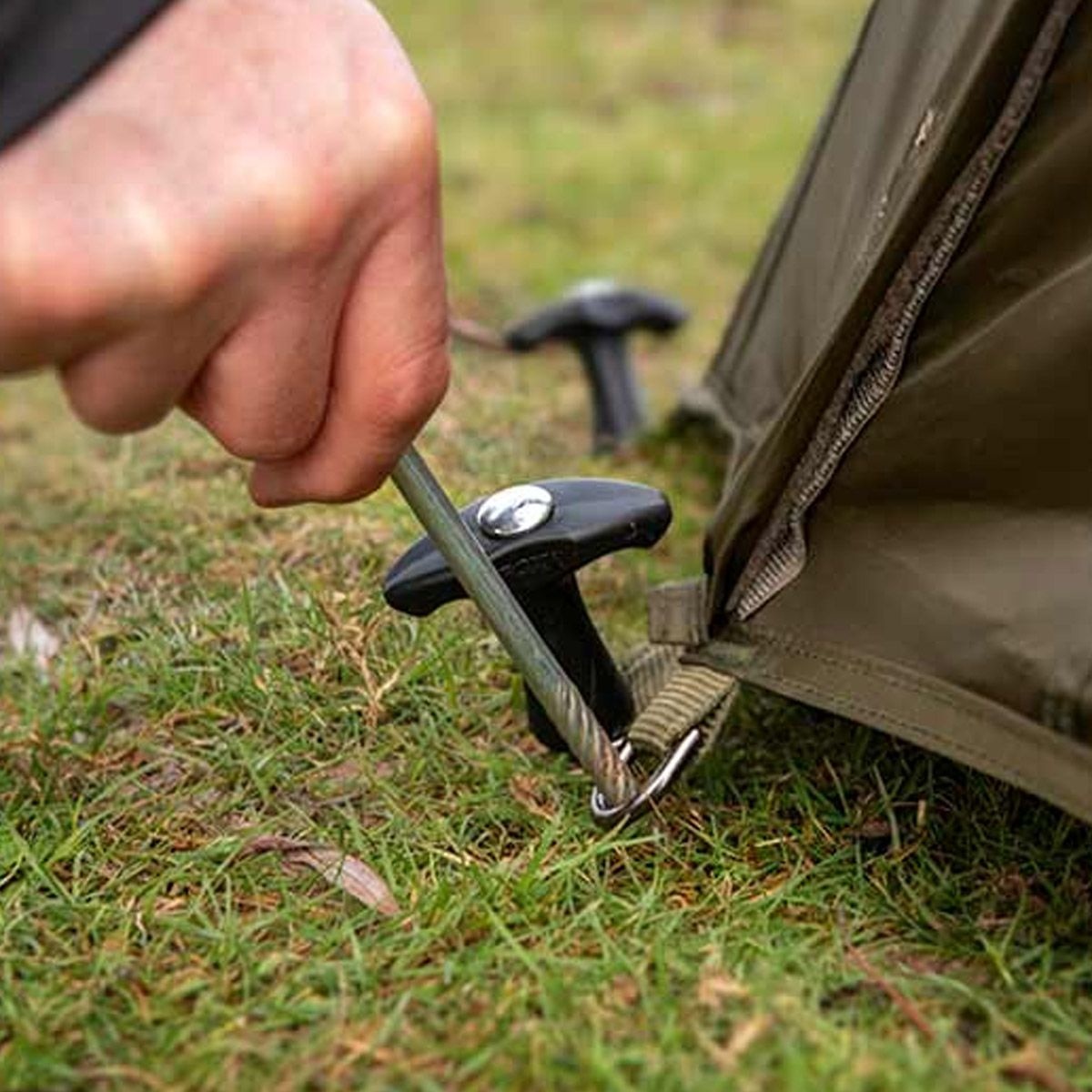 Das erste Fox Social Shelter mit vollständig aufblasbarem Rahmen. Dieser Rahmen ist extrem stabil und hält viel mehr aus als herkömmliche Rahmen, sodass Sie nie wieder verbogene oder gebrochene Zeltstangen haben werden.