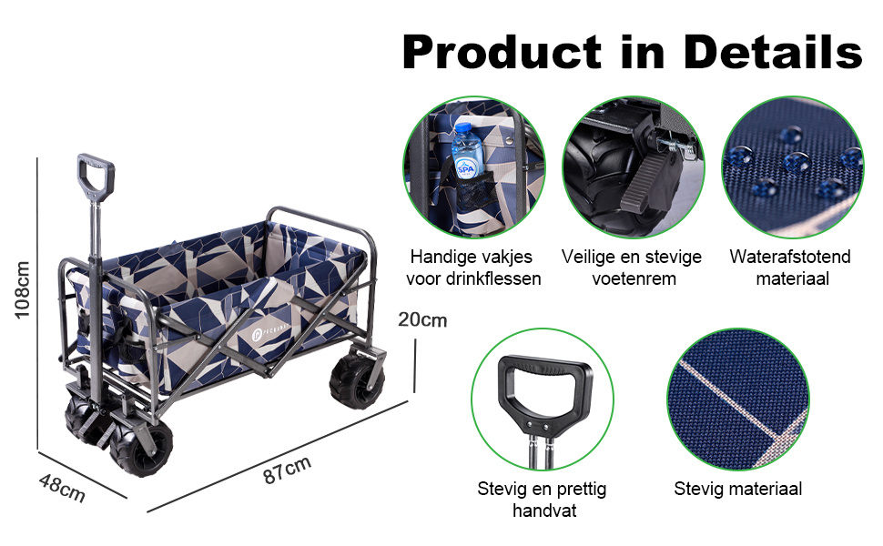 Dieser Wagen eignet sich perfekt für Outdoor-Reisen, Strandurlaube, Camping, Gartenarbeit und Shopping. Wir bieten 2 Jahre Garantie auf alle Komponenten des Wagens. Außerdem bieten wir eine 100% risikofreie Zufriedenheitsgarantie. Sollten Sie nicht zufrieden sein, erstatten wir Ihnen gerne Ihr Geld zurück.