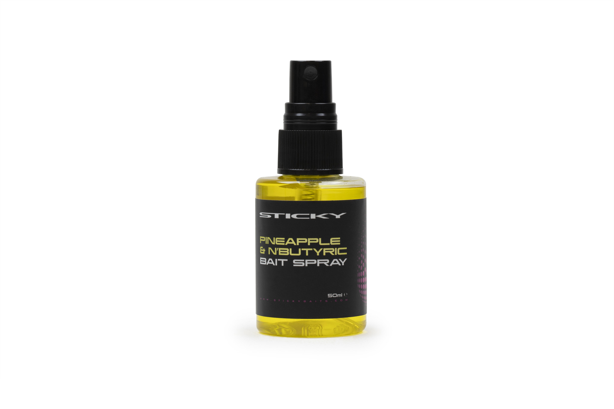 Die Bait-Spray-Reihe wurde als alternativer Lockstoff entwickelt, um die bereits in jeder Reihe vorhandenen Flüssigkeiten zu ergänzen, einschließlich des Sticky Baits Pineapple & N'Butter-Ködersprays.