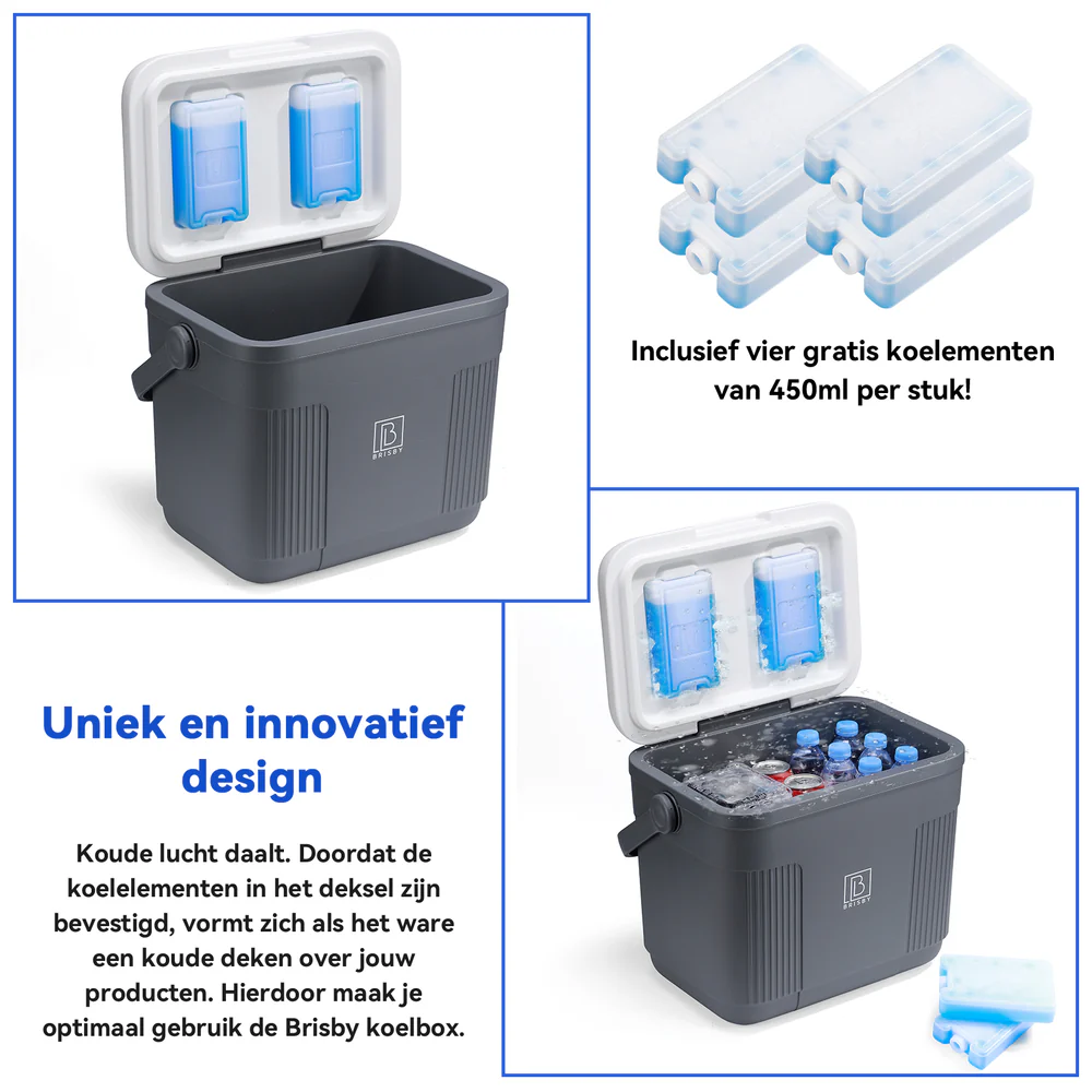 The cool box comes with no less than four cooling elements, so you can immediately benefit from the optimal cooling capacity. With these extra cooling elements, you can keep the cool box cool for even longer and enjoy refreshing drinks and fresh snacks, even during longer journeys.