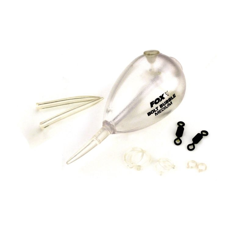 Surface fishing for carp with standard controllers can be quite frustrating. Fish can be spooked by the controller and are often less likely to be hooked. The Bolt Bubble is specifically designed for effective surface fishing at long distances. This streamlined, pear-shaped float has sufficient weight for long casts, and its special shape optimizes the bolt effect. The design of the Bolt Bubbles allows them to float low on the water, and their transparency makes them less likely to frighten wary carp. The casting weight can be easily adjusted by letting water in through the rubber plugs. This increases the casting weight and enhances the bolt-rig effect. This float has a central line passage. Sleeves on the top and bottom of the float prevent tangles. The swivel can be clamped into the rubber recess on the top, optimizing the bolt-rig effect. The Bolt Bubbles come with anti-tangle sleeves that make tangles virtually impossible. Available in 4 different sizes, including the correct size swivels, anti-tangle sleeves and bait bands.