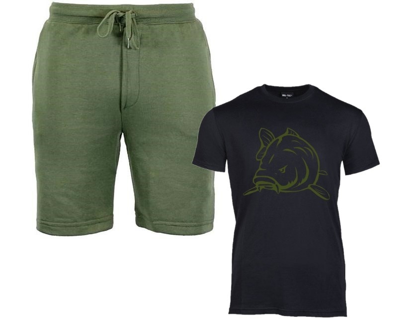 This cool House of Carp Clothing Combi Deal consists of a short green jogger and black t-shirt with an Angry Carp print in green. Ideal for the warmer days.