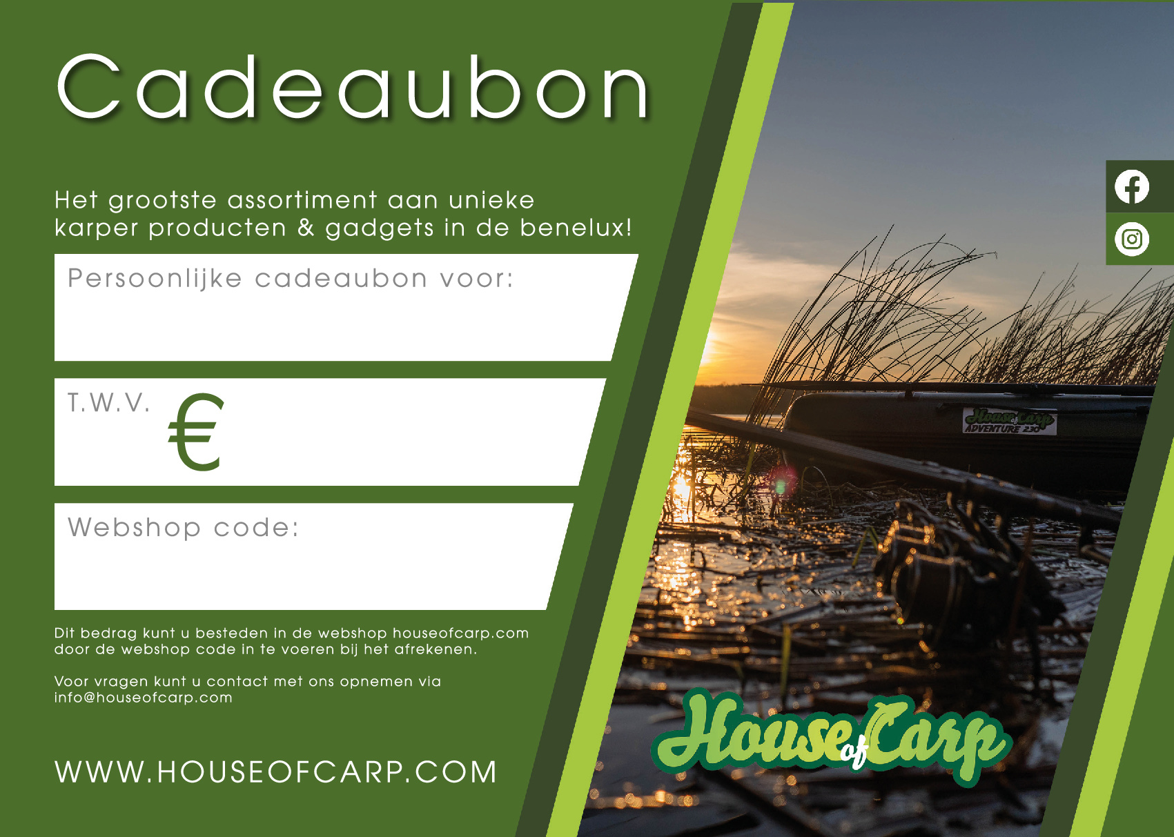 Surprise your friend or fishing buddy with a personal gift voucher from the House of Carp Webshop. This allows the recipient to immediately buy something from his or her favorite brand and/or our clothing. This way you are always in the right place if you want to surprise a carp angler!