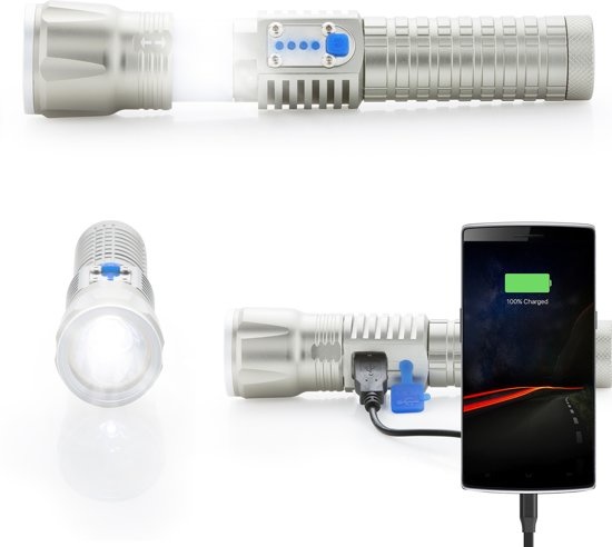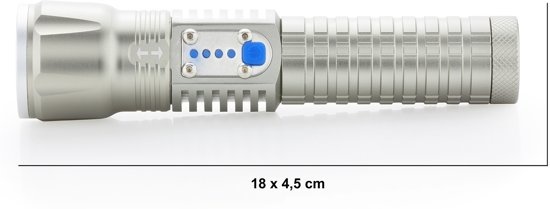 The flashlight has a light output of 280 lumens with a range of 250 meters. Rainproof housing and shockproof up to a height of 1 meter. This super flashlight can also be charged by the USB connection. Always at hand anywhere. The flashlight is only 4 cm thick and almost 18 cm long. A sought-after indoor and outdoor flashlight that lasts up to 7 hours.