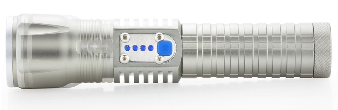 MacGyver Extreme Flashlight Flashlight features powerful 5W CREE LED. Easy to carry and use thanks to the lightweight aluminum housing. This flashlight has 4 positions: 100% on, 75%, 50% on and flashing.