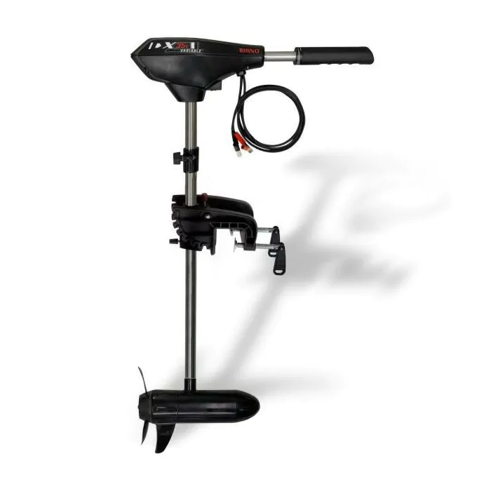 The new engine generation! The Rhino DX-V! Effectiveness at the highest technical level with the new PWM technology! Powerful electric outboard motor with 35 lb thrust at 12 V voltage. The approximately 390 W brings the engine directly to maximum performance. Furthermore, the Vario Speed principle enables a gradual speed control when sailing forwards and backwards. The extensive display provides information about the battery charge status, the currently used engine power and also provides further useful information about the engine status. The engine also has a USB connection for charging your phone or lamps. The lever can be pulled out, the shaft is made of stainless steel. The whole thing can be folded up by means of a lever, the depth at which the propeller hangs and the resistance with which it can be steered can be infinitely adjusted. Not only an absolute must for boat fishermen!