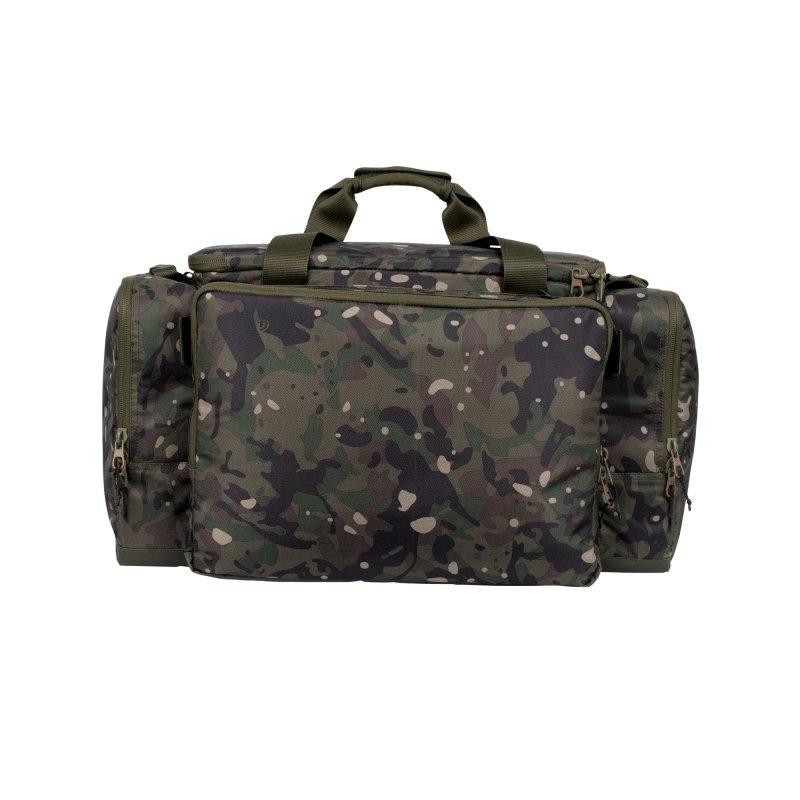 The carryall's large main compartment is padded and well-lined to accommodate and protect your gear during transit. Heavy-duty double zippers are present on the main compartment and all external pockets. The reinforced lid of the main compartment ensures the carryalls retain their shape when the contents are removed. The lid of the bag can be used as a bivvy table to save space in your shelter. Internally, there is a large, zippered, heavy-duty mesh pocket on the underside of the lid.
