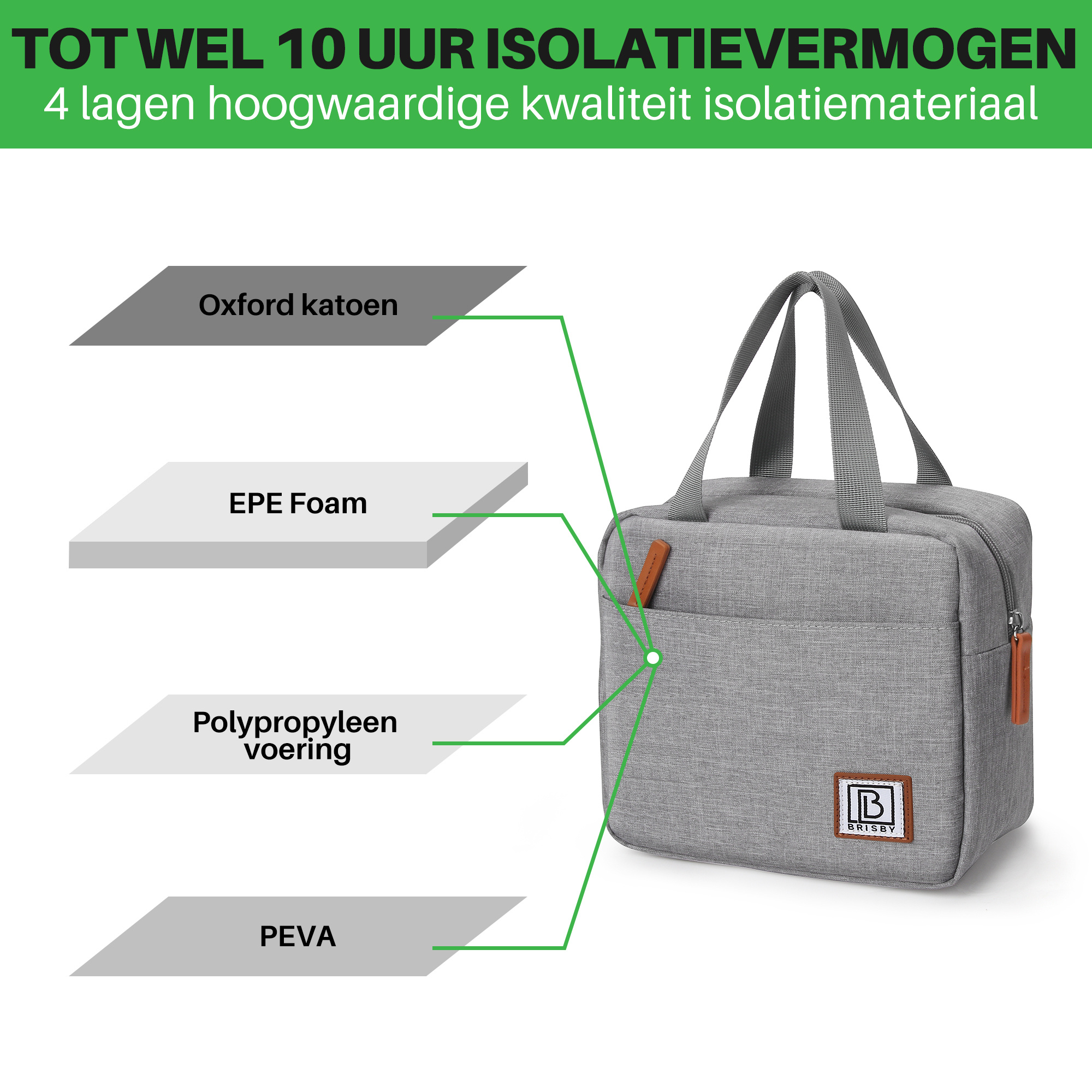 La bolsa térmica térmica Brisby de 4 capas tiene todo lo que necesitas. Con 10 horas de aislamiento, tu almuerzo y otros refrigerios se mantendrán frescos. Y gracias a sus cómodas asas, puedes llevarla fácilmente a cualquier parte.