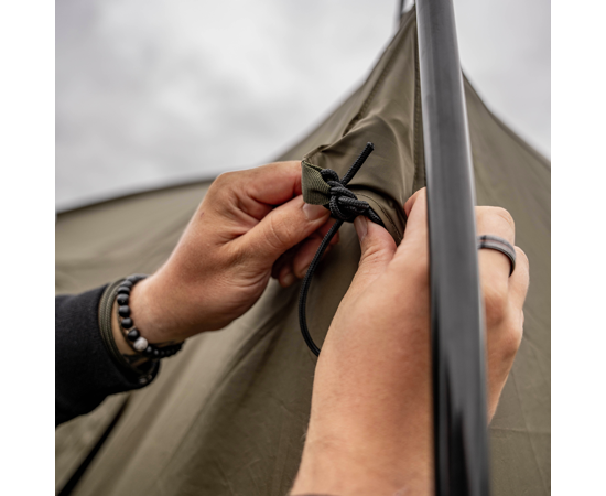 - La configuración de la puerta lateral permite colocar bivvies en el refugio.