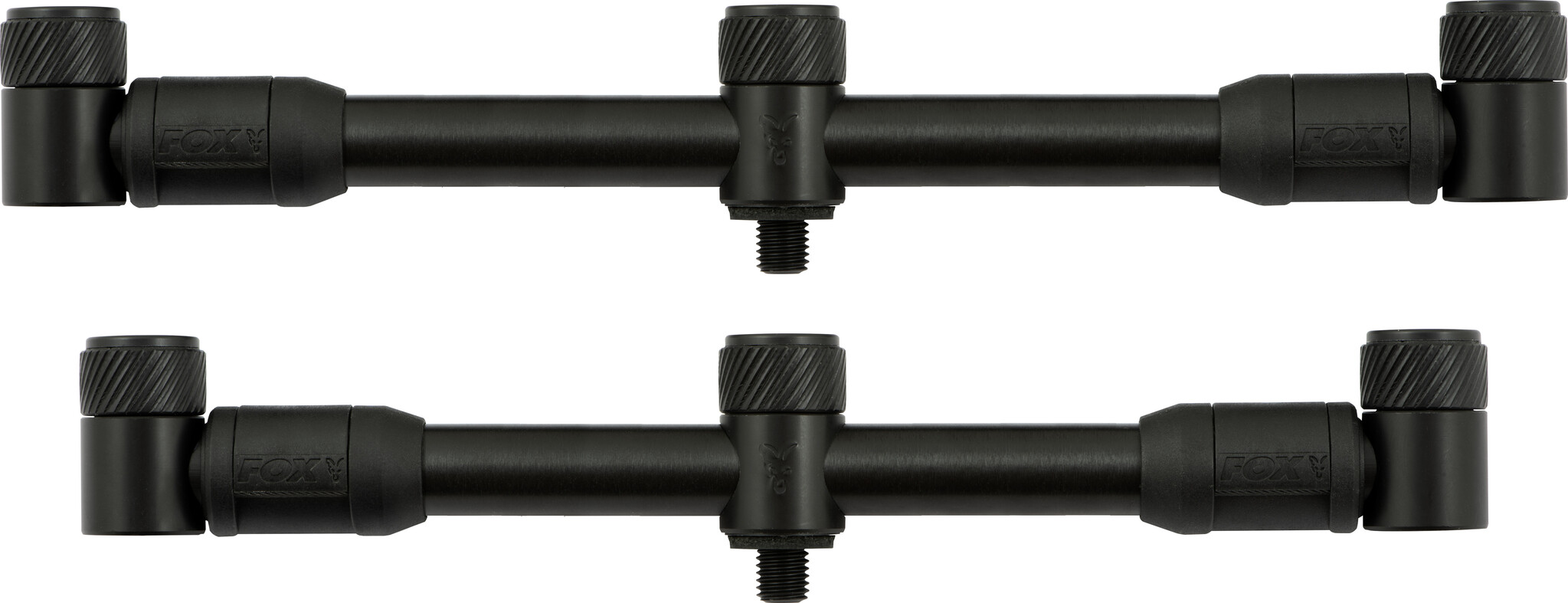 Barra de zumbador ajustable Fox Black Label QR para 3 cañas XL con sistema de liberación rápida. Barra de zumbador ajustable con espacio adicional entre las cañas.