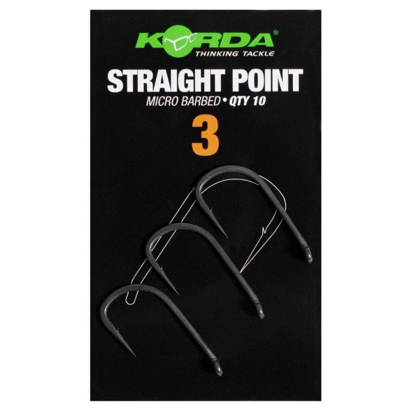 Los anzuelos de punta recta están disponibles en tamaños 2, 3, 4, 5 y 6, con y sin púas. Cada paquete contiene 10 anzuelos.