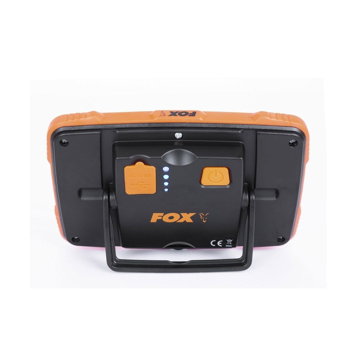 Lámpara recargable Fox con rosca para trípode, equipada con puerto de carga micro USB, indicadores LED de capacidad de batería y estado de carga. Elección de color: blanco natural, blanco frío y blanco cálido. Carcasa resistente con agarre de goma.