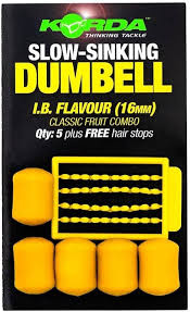 La mancuerna Korda Slow Sinking es un cebo de imitación ligeramente flotante. Esto hace que se hunda lentamente hasta el fondo y garantiza un enganche eficaz. Las mancuernas de colores llamativos están aromatizadas con un aroma atractivo. Se suministra co