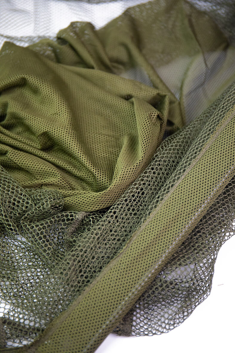 Ultrasuave - Malla verde oliva con doble costura - Fondo y mangas reforzados que garantizan una gran fiabilidad - Cabezal de 42'' (107 cm) y mango de 6 pies (180 cm) - Brazos telescópicos de malla en carbono compuesto - Telescópico - Mango de 2 piezas -
