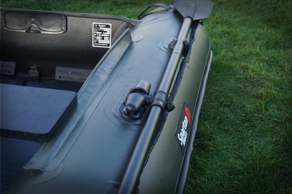 La Spartan 200 Compact está fabricada con PVC de alta calidad de 0,7 mm y 1100 Decitex de resistencia, lo que le proporciona una excelente durabilidad y resistencia al desgaste. Su espejo de popa extrafuerte con doble unión, junto con el riel de protección de alta resistencia y las anchas bandas de protección, ofrecen protección adicional en condiciones adversas. La embarcación está equipada con una anilla en D negra y una válvula de alivio de presión para mayor seguridad.