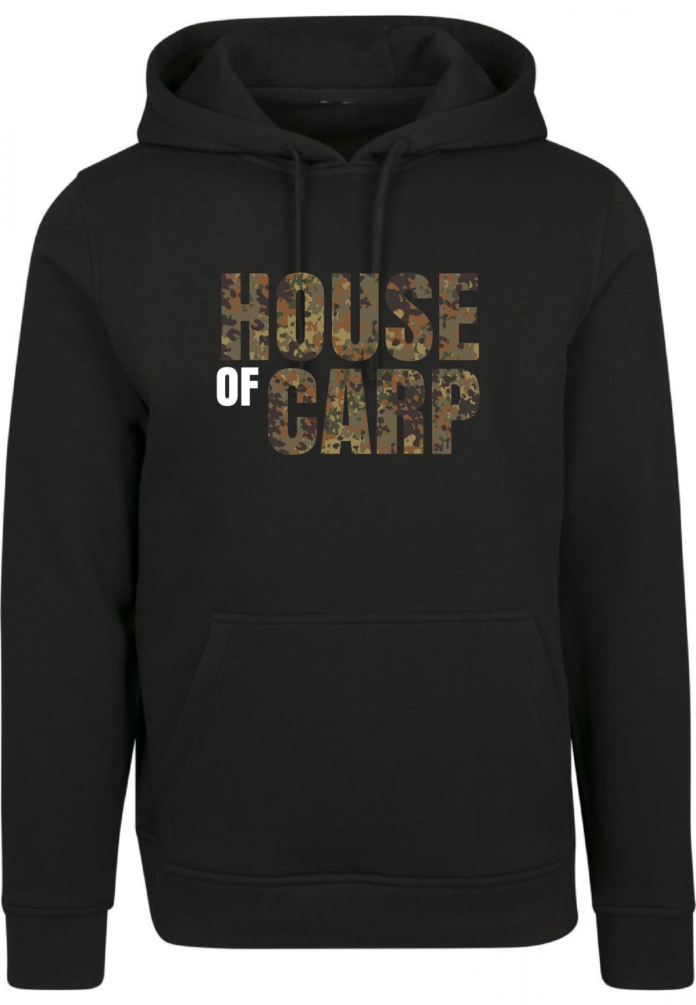 ¡Una cálida sudadera negra con capucha con el nuevo logotipo de House of carp en un genial estampado Flecktarn Camo! ¡Estas sudaderas con capucha duraderas son de alta calidad y garantizan una vida extra larga y una comodidad de uso óptima!