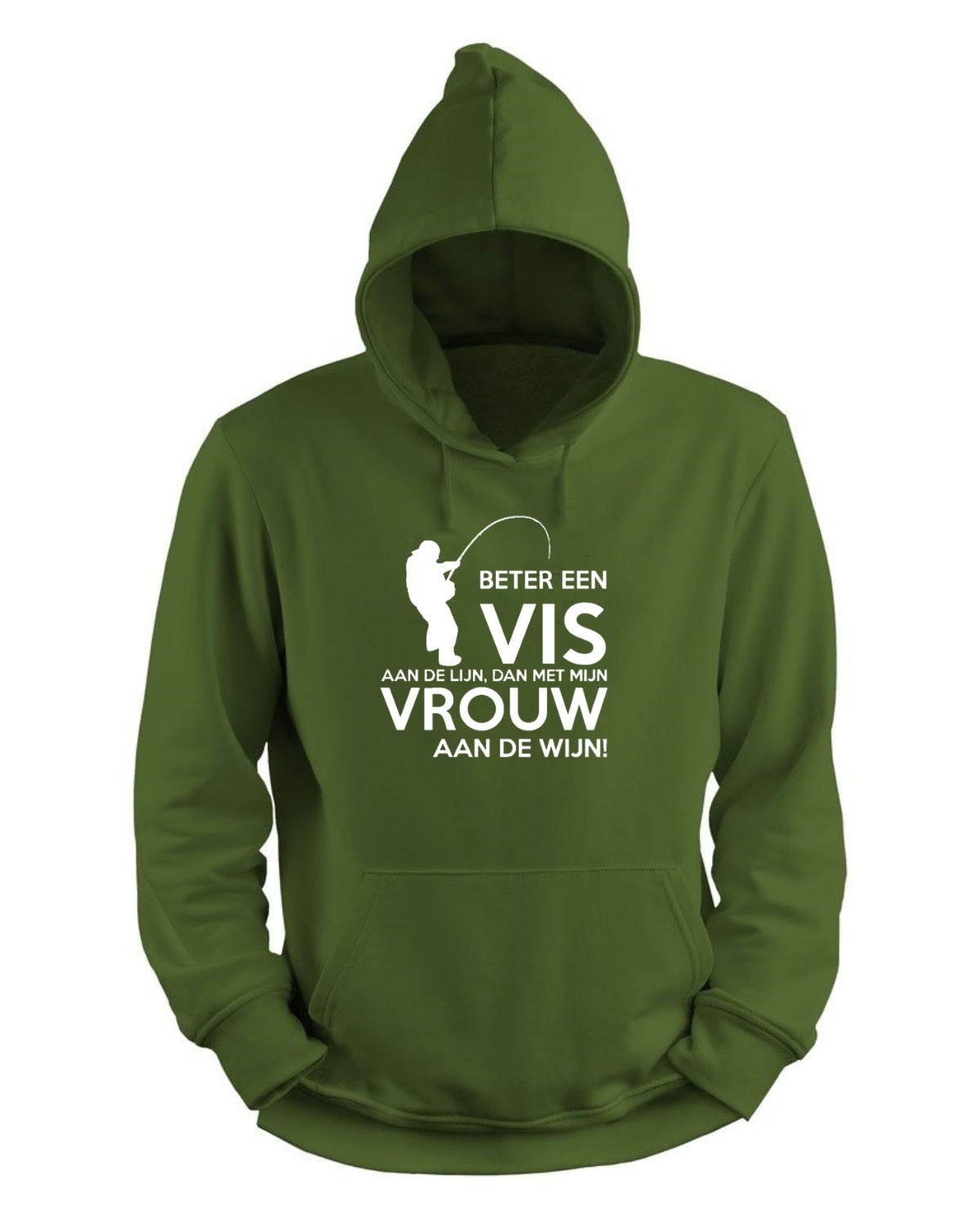 Hermosa declaración que da en el clavo ;). '¡Más vale un pez en el sedal que con mi mujer bebiendo vino!'. Si estás completamente de acuerdo con esta afirmación, ¡obtén una camiseta o una sudadera con capucha con este genial estampado!