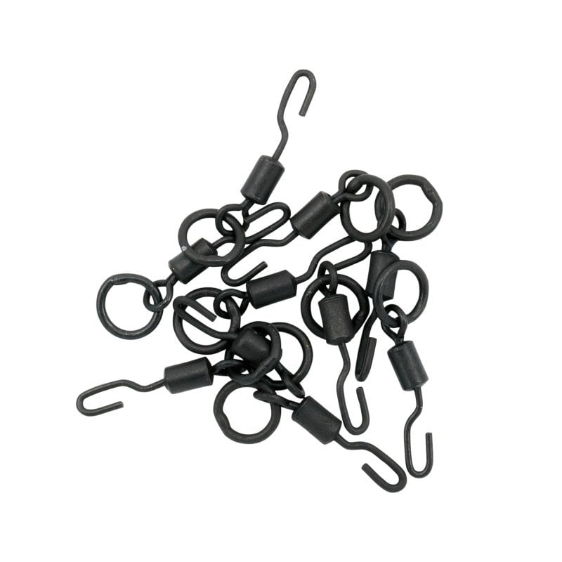 El emerillón Trakker Ronnie tamaño 11 es resistente para montajes Ronnie. Permite cambios rápidos de anzuelo, ofrece al montaje una libertad de movimiento de 360 grados y tiene un sutil acabado negro mate antirreflejos.