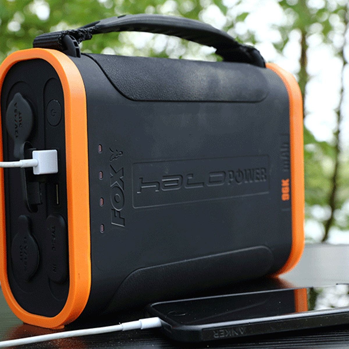 Utilisez-vous beaucoup d’appareils électroniques, tels que des tablettes, des appareils photo, des smartphones et même des ordinateurs portables ? Alors le Fox Halo 96K Power Pack est idéal pour vous. Il est fabriqué à partir d'un boîtier robuste qui le rend extrêmement durable. Equipé de côtés en caoutchouc (antidérapants) pour qu'il reste fermement en place sur votre table de bivouac.