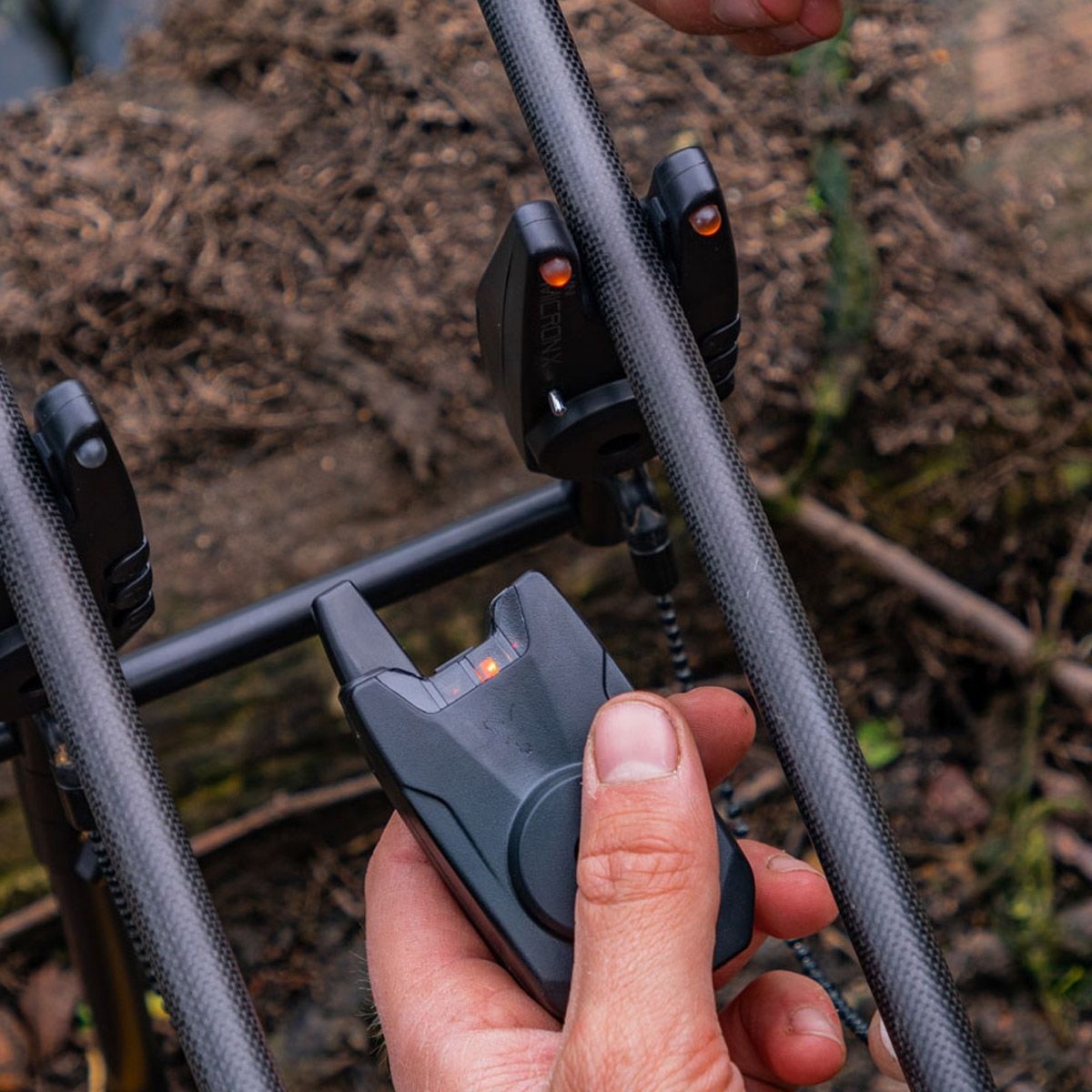 Le Fox Mini Micron X est un détecteur de touche de Fox et est équipé d'un volume réglable, d'une LED multicolore haute visibilité, d'un haut-parleur piézo de haute qualité, d'un système de détection D-Tec et d'une roue à roulettes Tru-Run. Le Mini Micron MX est alimenté par des piles de type N/LR1.