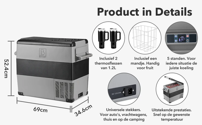 Découvrez la glacière à compresseur Brisby de 49,5 L : chauffe rapidement de la température ambiante (25 °C) à 0 °C en 25 minutes, réglable via un affichage numérique clair (°C/°F).