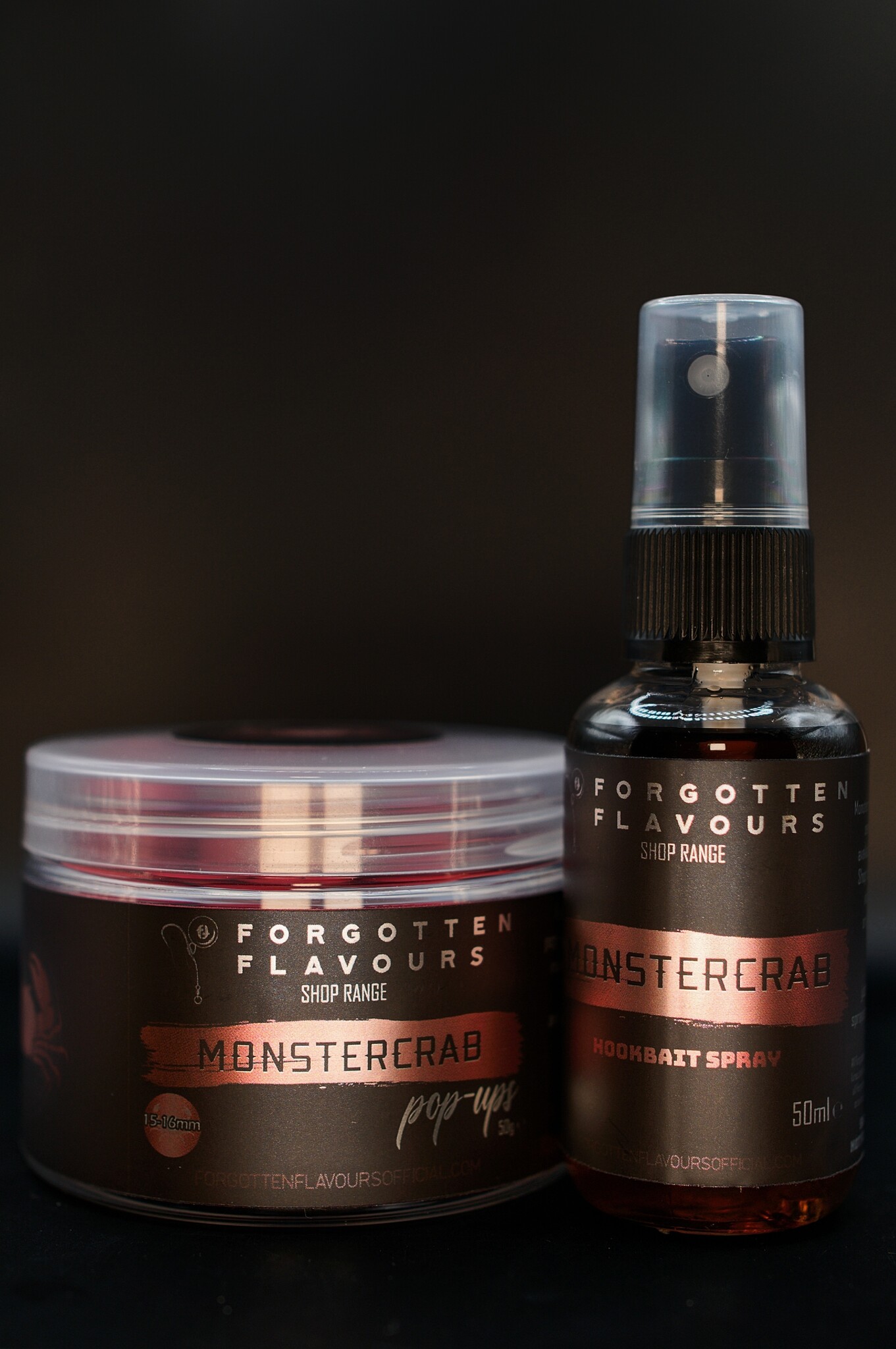 Forgotten Flavours Monstercrab Baitspray est un spray d'appât de haute qualité qui peut être utilisé sur vos pop-ups et appâts à hameçon.