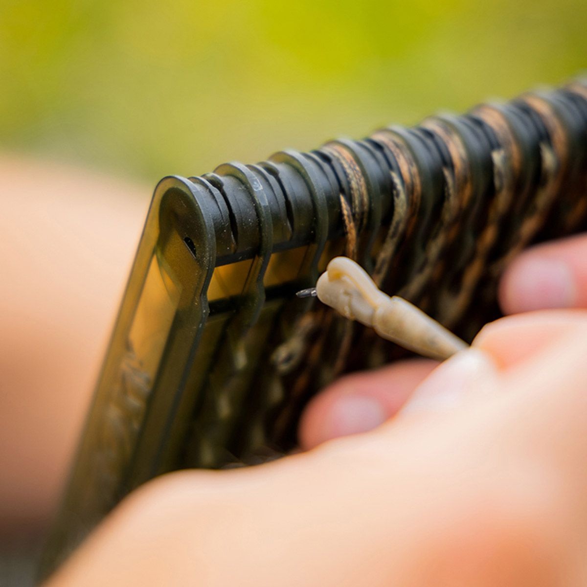 Le Leader Rack s'intègre dans la boîte à pêche moyenne et offre un espace pour ranger tous les types de bas de ligne noués. Ces racks peuvent accueillir jusqu'à 10 leaders pré-attachés.