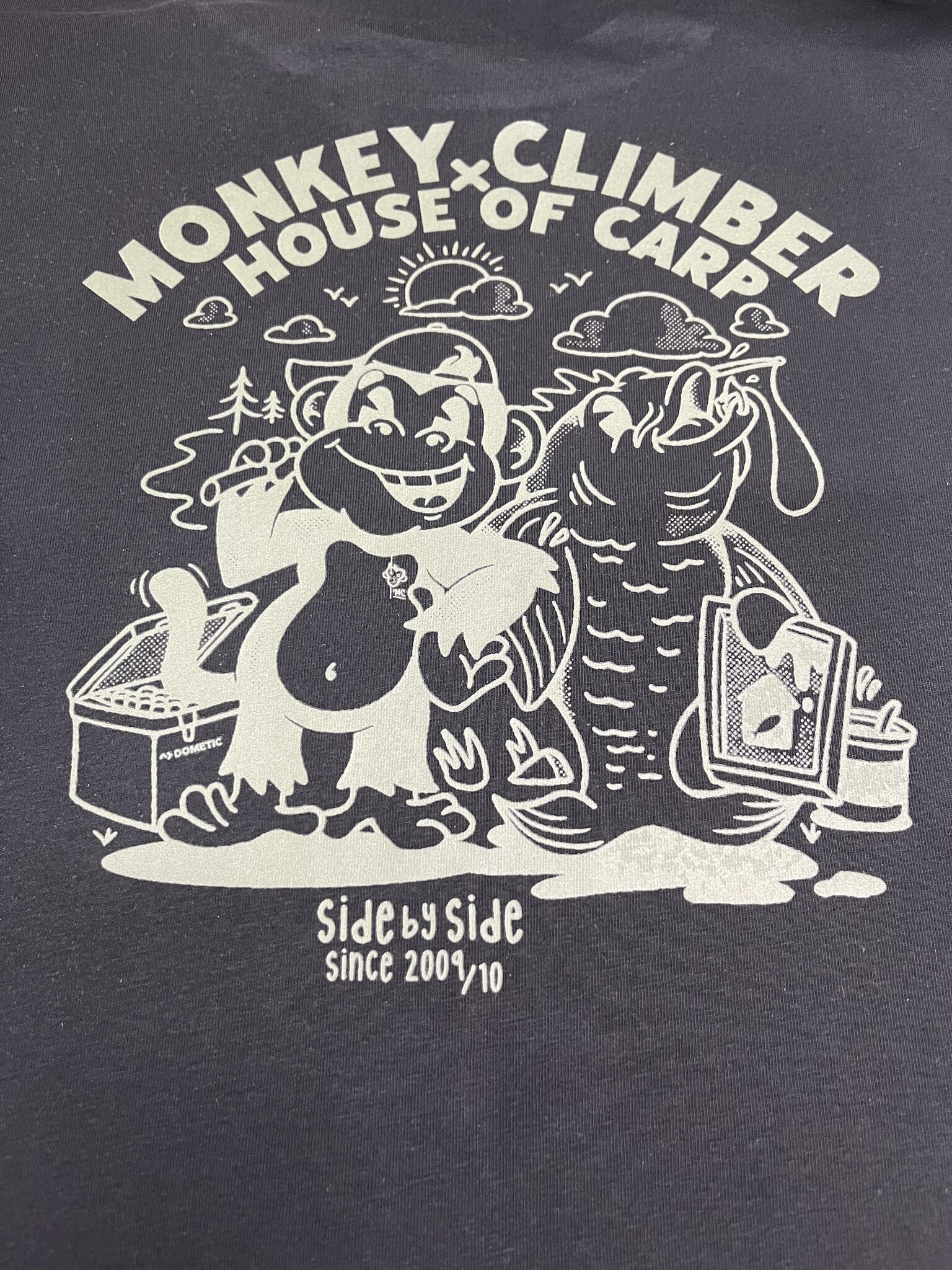 Monkey Climber x House of Carp, 15 ans après, une collaboration insolite et peut-être surprenante. Lorsque Monkey Climber a été fondé en 2011 – à l'époque encore un simple magazine – House of Carp avait été baptisé un an plus tôt. Monkey Climber a participé à de nombreux salons et journées portes ouvertes à travers le pays pour promouvoir le nouveau magazine. Les propriétaires et amis présents sur le stand portaient des vêtements arborant le célèbre logo du singe, fournis par House of Carp. Les lecteurs ont rapidement demandé s'ils pouvaient également acheter certains de ces vêtements, et une commande plus importante de House of Carp a rapidement suivi. Entre-temps, les deux entreprises ont beaucoup évolué et nos chemins se sont récemment croisés pour ce magnifique imprimé collaboratif. Édition limitée.