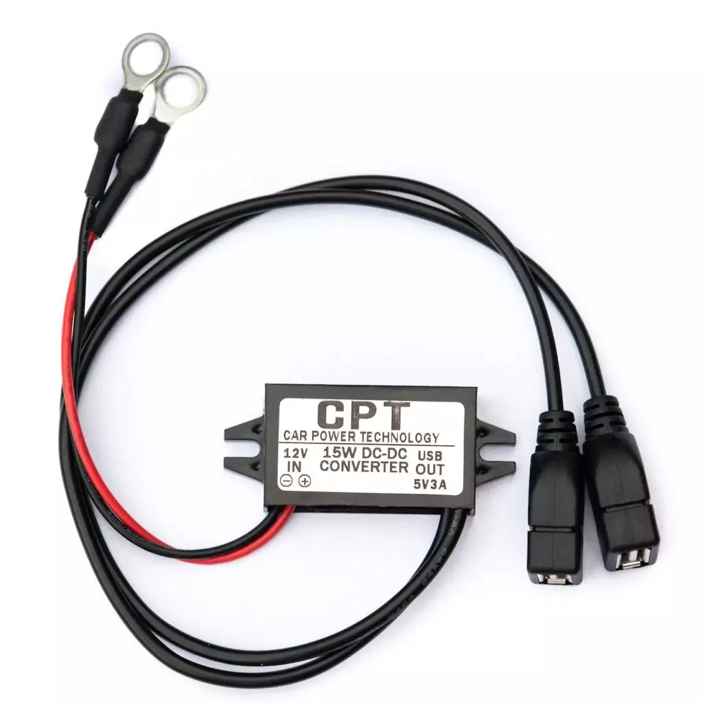 Cavo adattatore USB doppio per ricaricare facilmente il tuo smartphone o tablet in riva al mare con una batteria agli ioni di litio Rebelcell da 12 V.