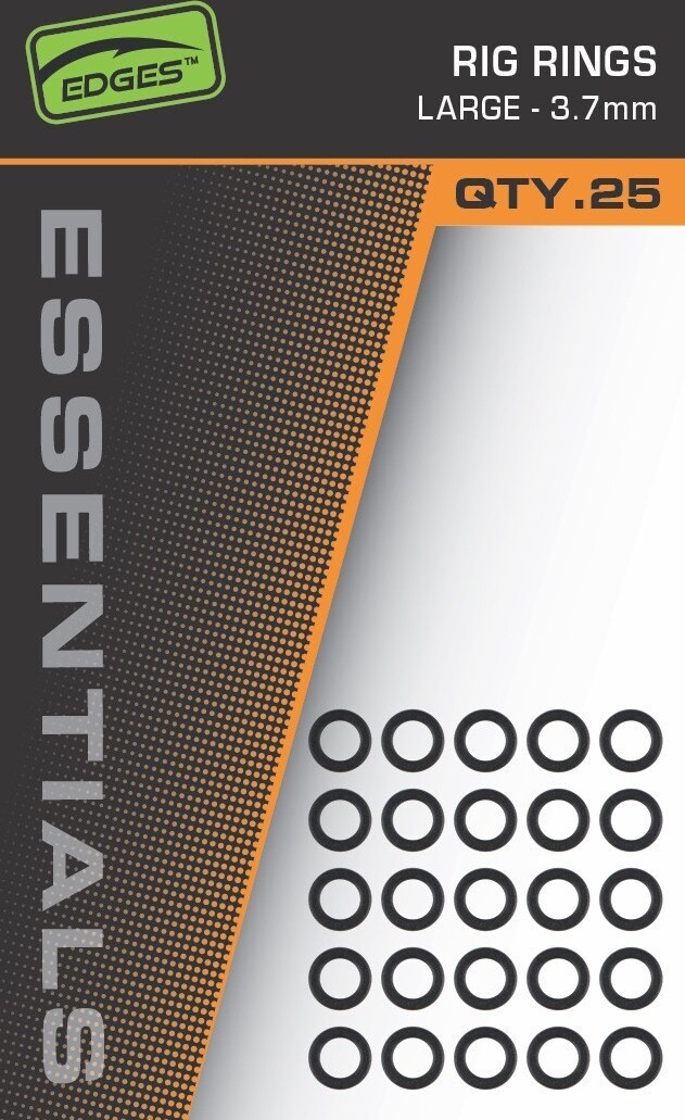 Gli anelli Fox Edges Essentials Rig consentono un movimento fluido dell'esca sul gambo dell'amo o sul D-rig. Gli anelli sono perfettamente rotondi e presentano un rivestimento antiriflesso per una quasi totale invisibilità sott'acqua.