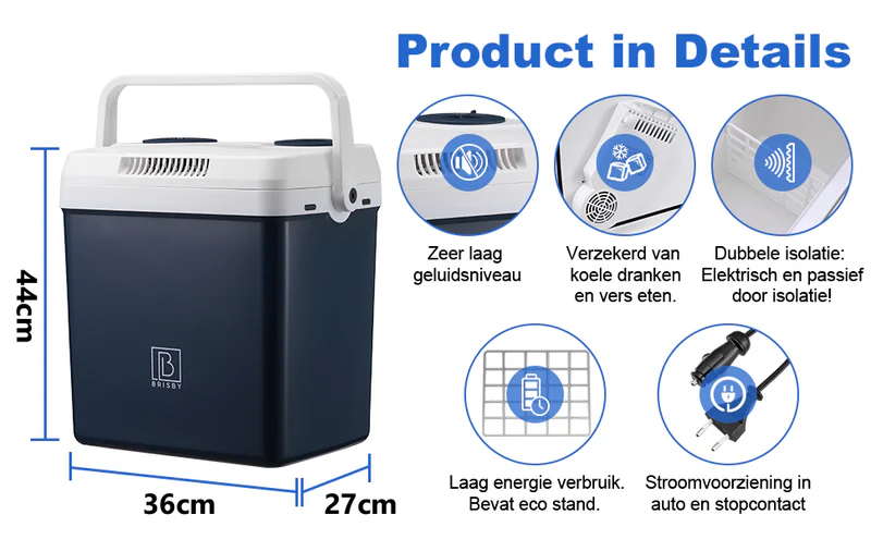 Cerchi la borsa frigo perfetta per le tue avventure? Allora la borsa frigo elettrica Brisby da 25 litri Frigobox Deluxe è proprio quello che ti serve! Con una capacità di 25 litri, un attacco a 12 V e 220/230 V per auto e camper, un divisorio, un coperchio con posizione di blocco e una comoda maniglia per il trasporto, questa borsa frigo mantiene sempre cibi e bevande freschi o caldi. Leggera, robusta e facile da pulire: la borsa frigo ideale per campeggiatori, turisti, famiglie e gruppi di amici. Cibo e bevande sempre freschi, ovunque tu sia!