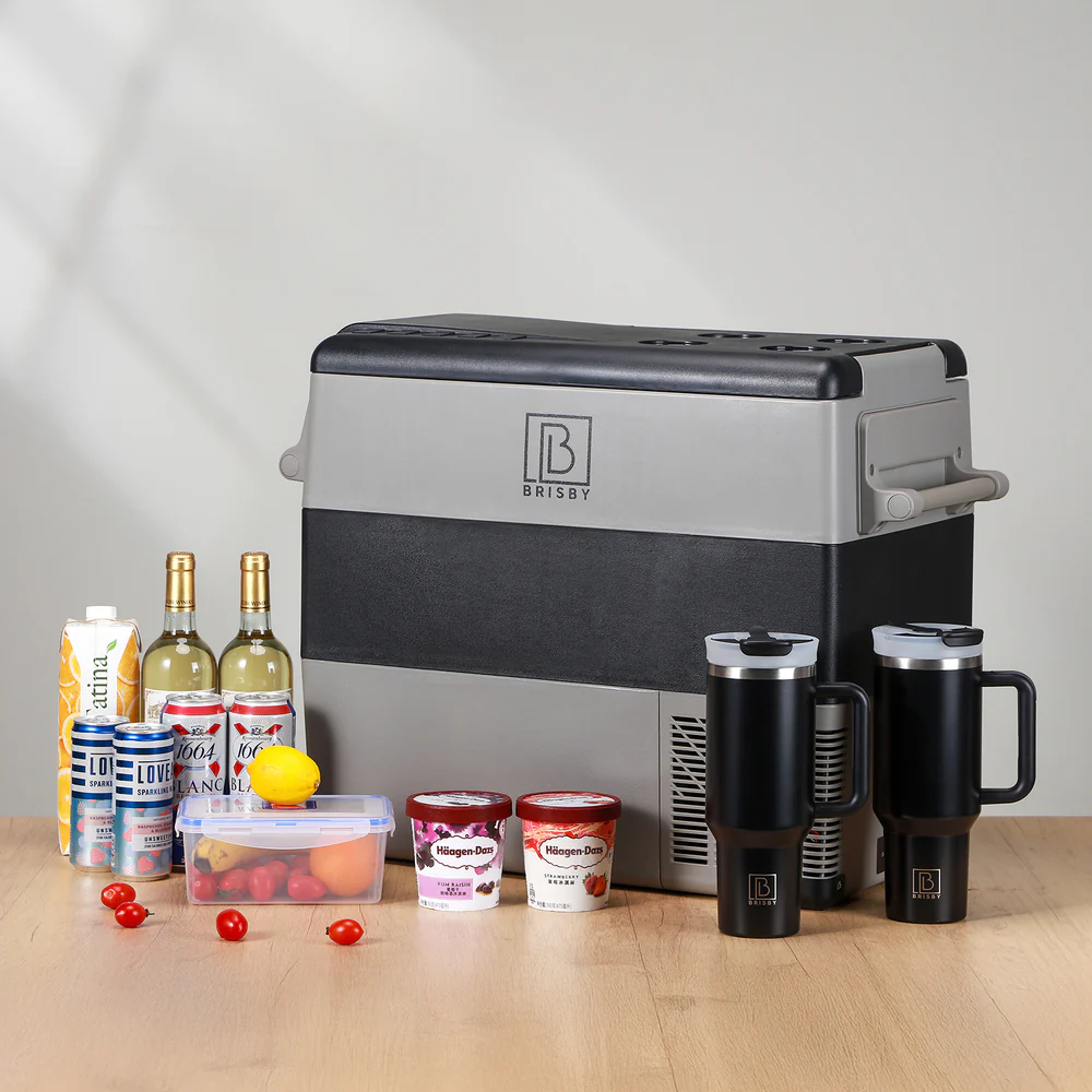 Maak kennis met de Brisby 49,5 L compressor koelbox: binnen 25 min razendsnel van kamertemperatuur (25 °C) naar 0 °C, instelbaar via een helder digitaal display (°C/°F)
