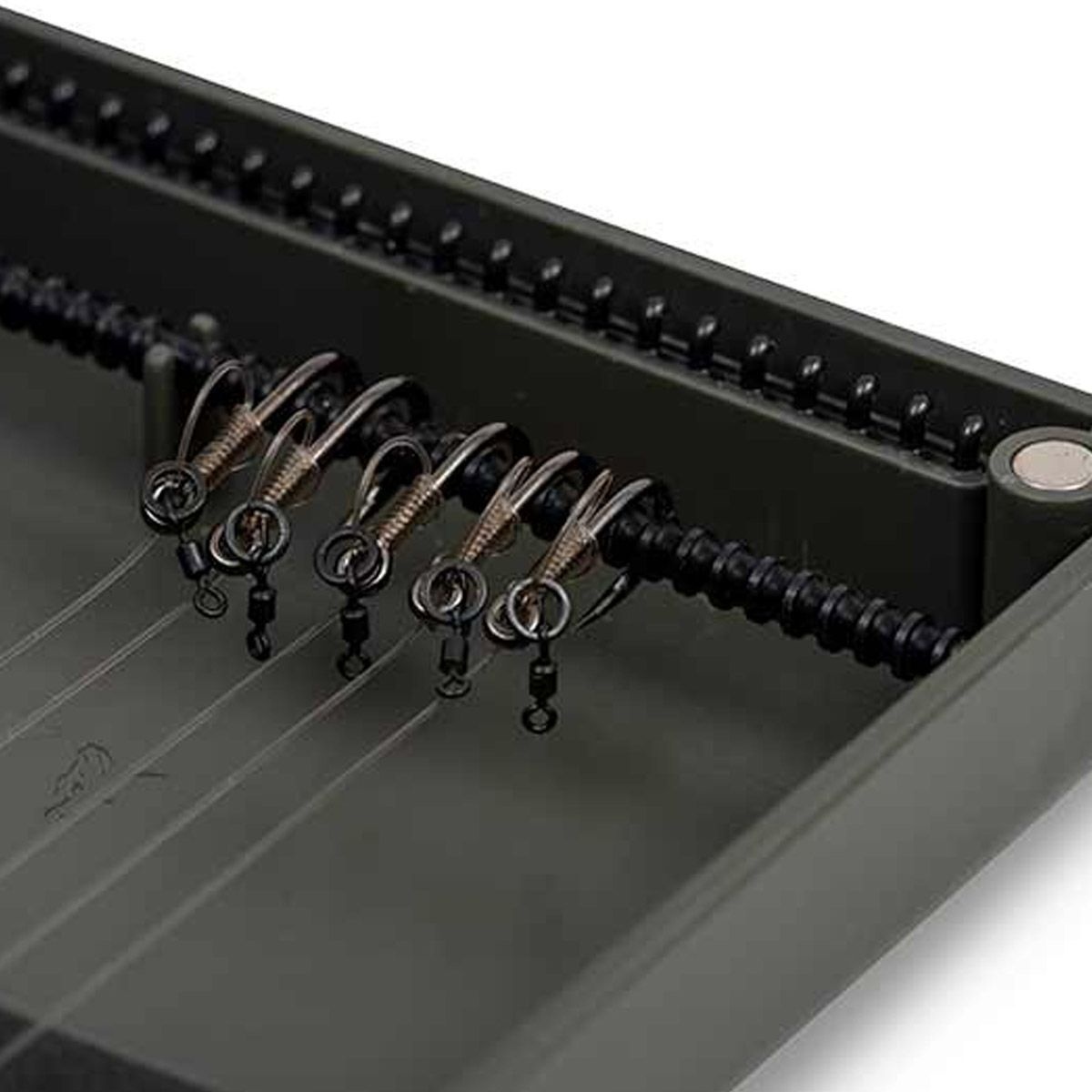 De medium rig box van Fox is de ideale oplossing voor het bewaren van al je rigs met een lengte van maximaal 20 centimeter. Het voordeel van een rig box is dat je onderlijnen perfect in conditie blijven en dat je haken vlijmscherp blijven.