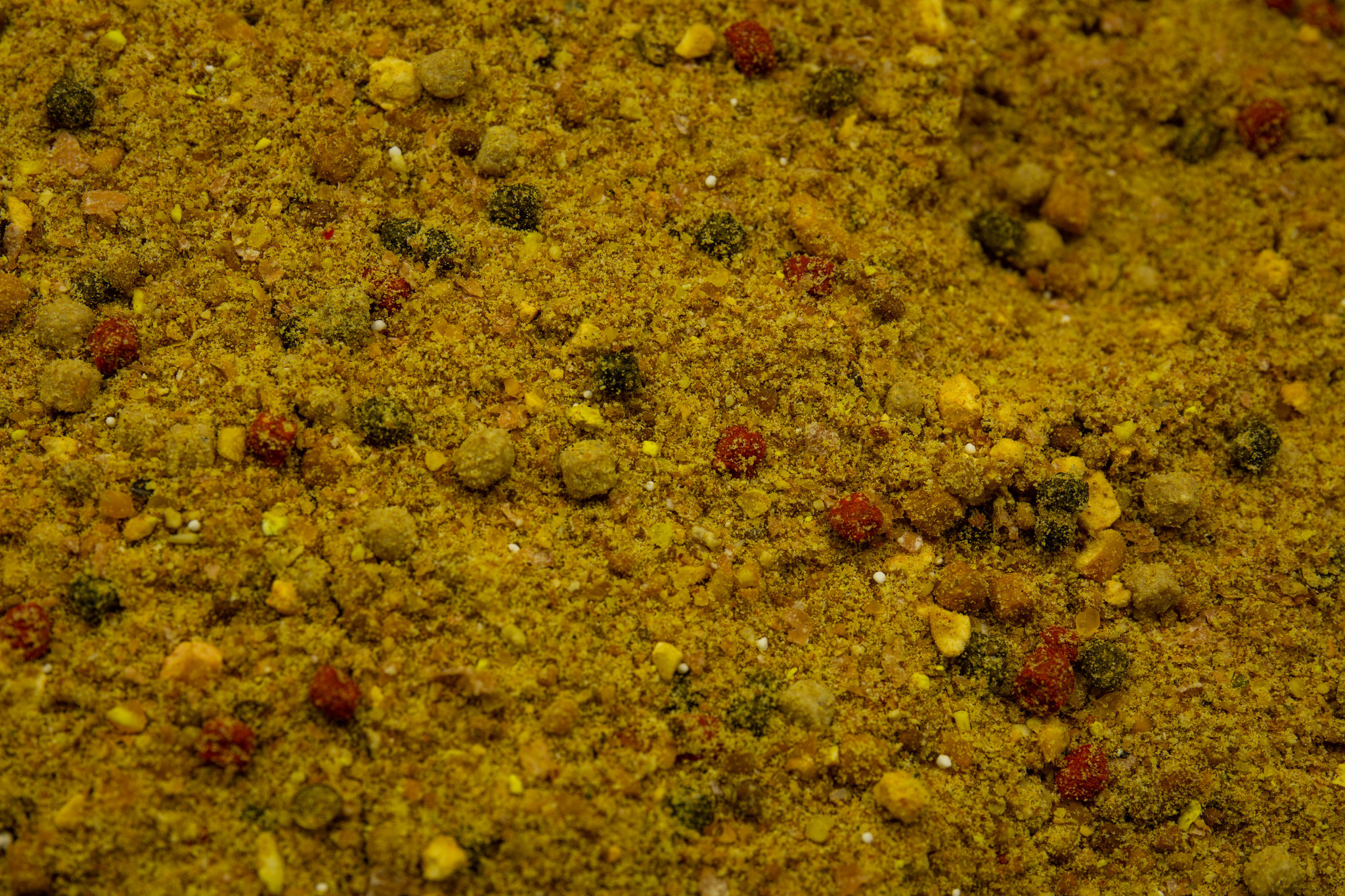 Alleen echte karpermagneten zoals Vitamelo, in water oplosbare Soja-eiwit, Geroosterde pindabloem, Tijgernoot en Peperkoekmeel worden gebruikt in de My Baits stickmix. De micropellets in verschillende maten en gemalen heilbotkorrels geven deze mix extra structuur.