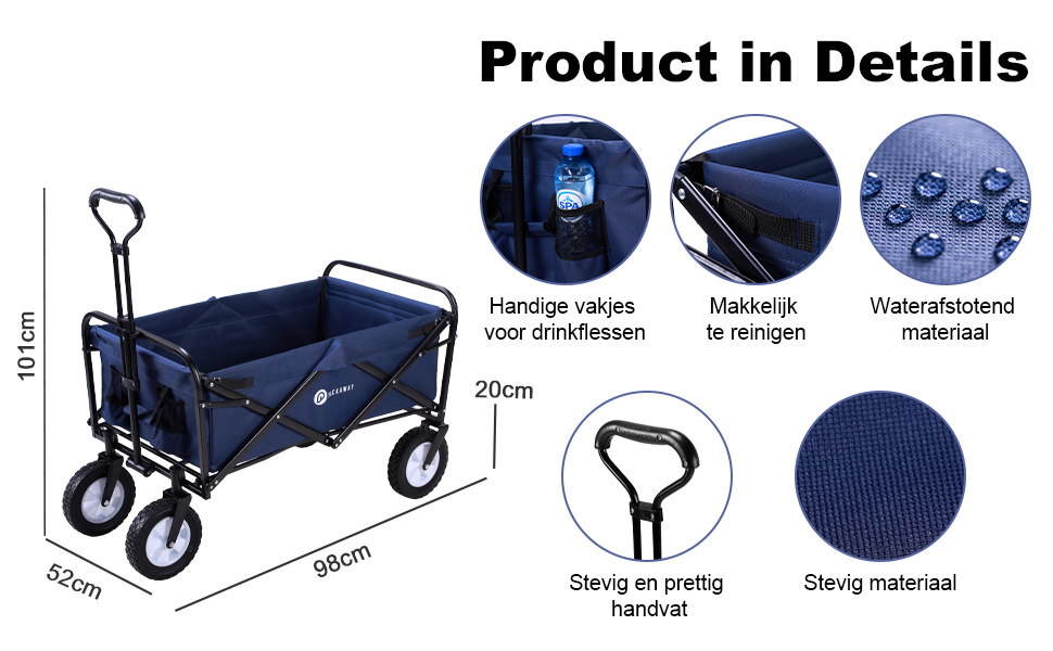 Deze wagen is perfect voor buitenreizen, strandvakanties, kamperen, tuinieren en winkelen. Wij bieden 2 JAAR GARANTIE op alle onderdelen op de bolderkar. We bieden ook een 100% risicovrije tevredenheidsgarantie, als je er niet tevreden mee bent, zullen we graag terugbetalen.