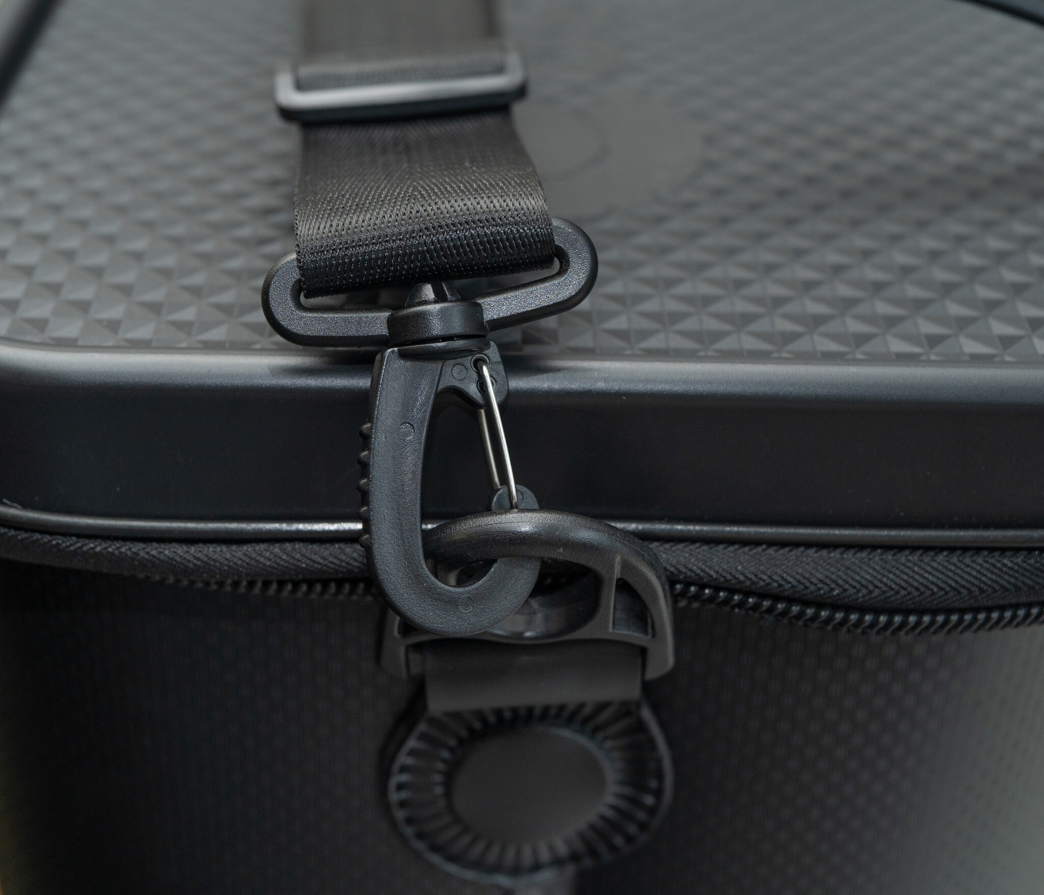 Gemaakt van 2 mm EVA met dubbellaagse bodem (3 mm). Hardtop deksel te gebruiken als tafel. Waterdicht, met stevige handgreep, quick clip en verstelbare schouderband. Hoge capaciteit voor grote items.