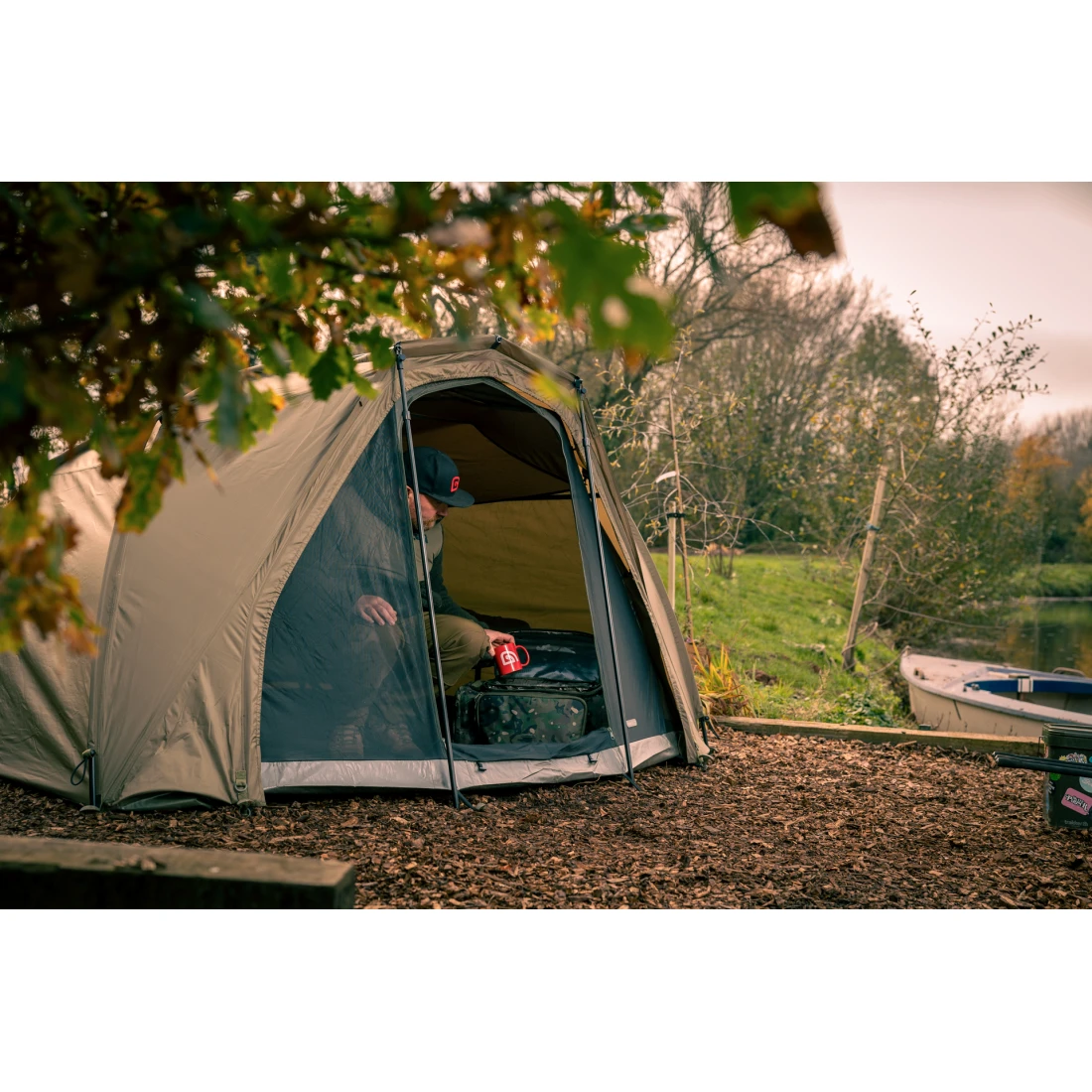 - Verandert de bivvy in een schuilplaats met twee huiden