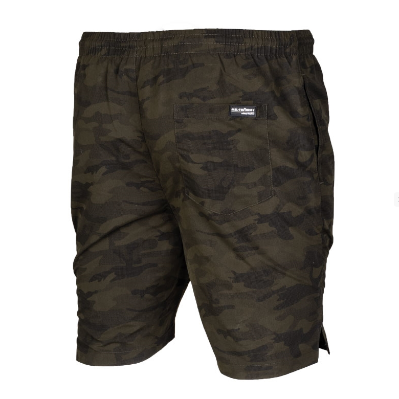 Comfortabele zwembroek van zacht en sneldrogend materiaal met camouflagepatroon. Voorzien van zijzakken en achterzakken.